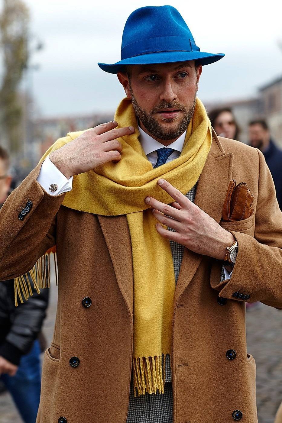Шарфы в таких образах могут быть как однотонными, в тон любому цвету в вашем образе – полоске в рубашке, клеточке в пиджаке, ромбу на жилете или даже носках, так и в клетку. Пусть эта клетка состоит из всех цветов вашего ансамбля.