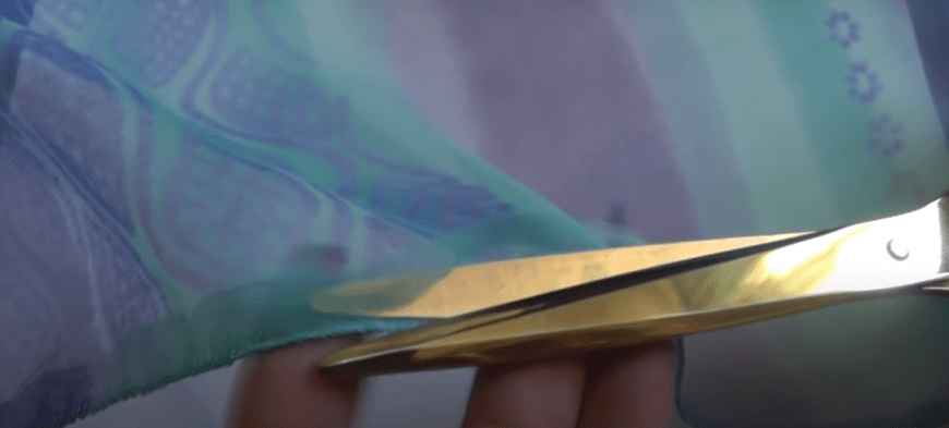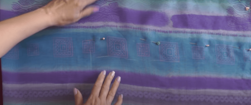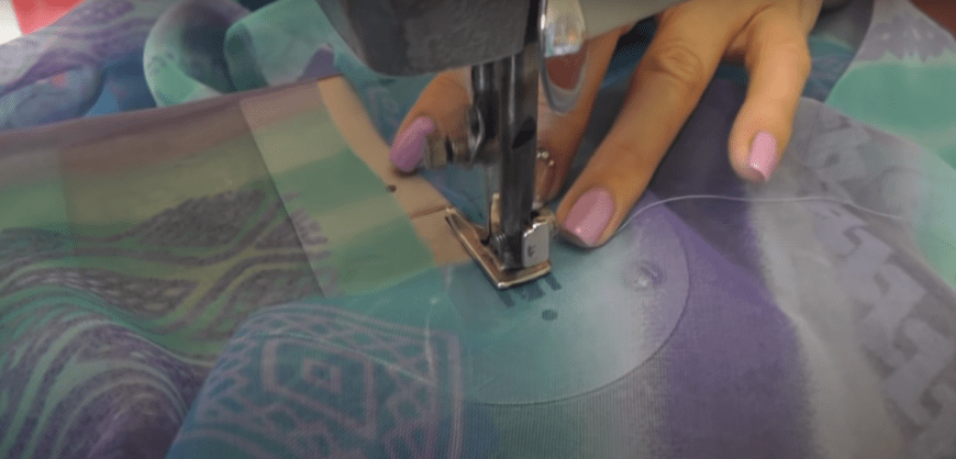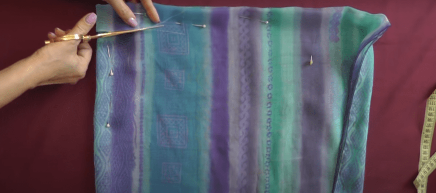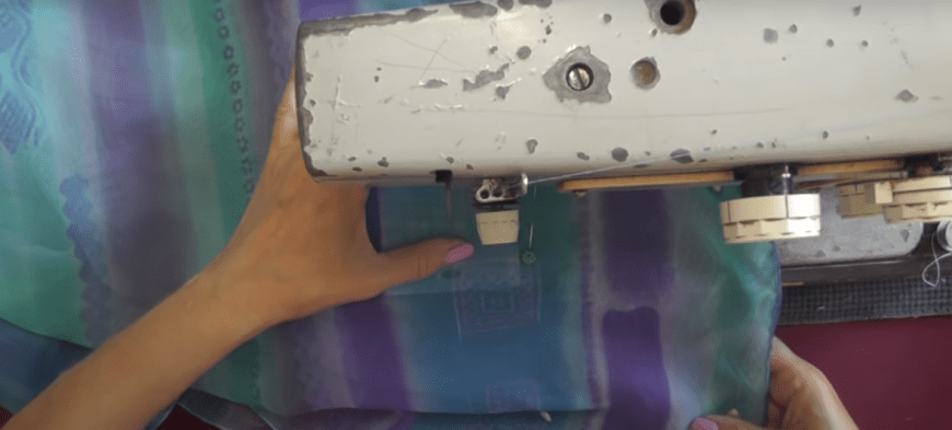 К шитью приступают после обработки краев ткани. Для этого удаляют обтрепавшиеся края кромки, делают подгиб приблизительно 1 см, проходят прямой строчкой по лицевой стороне максимально близко к краю. Подвернутый край срезают ножницами, заворачивают еще на 0,5 см и прошивают.