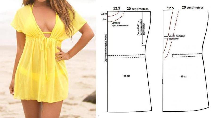 Для худеньких девушек подойдет следующая модель для пляжа. Для этого изделия лучше выбрать батист или ситец.