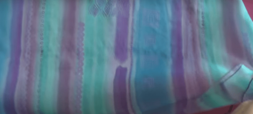 - Снимают материал с плеч и сострачивают на машинке края и отверстия под рукава, предварительно подвернув их;