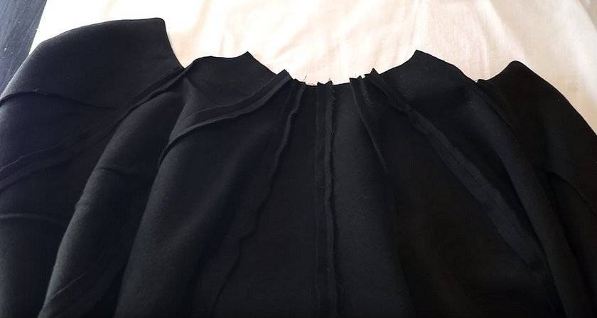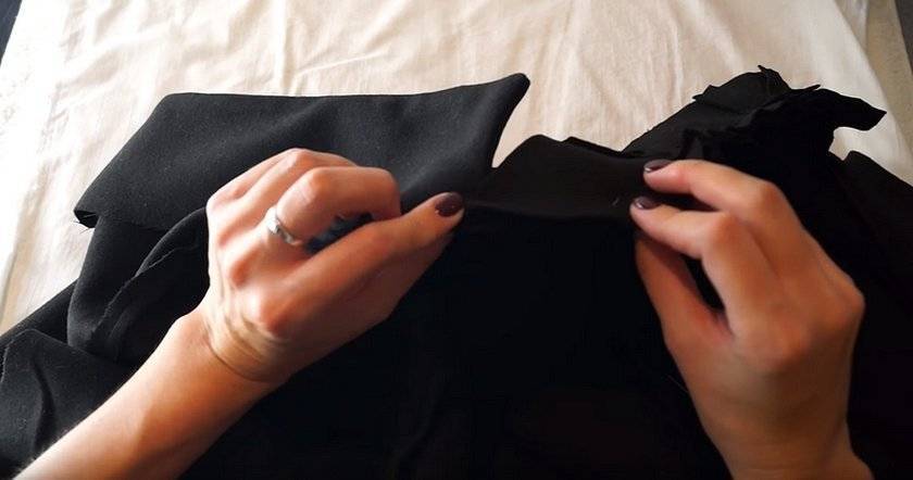 - Части рукава сшить со стороны изнанки и пропустить шов по длине всей детали. Процесс повторить со вторым рукавом.
