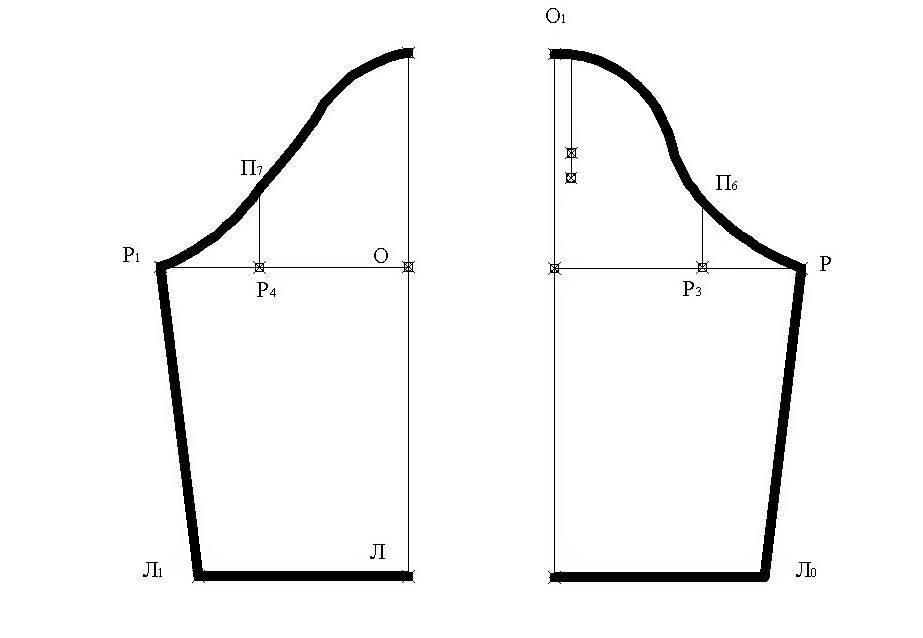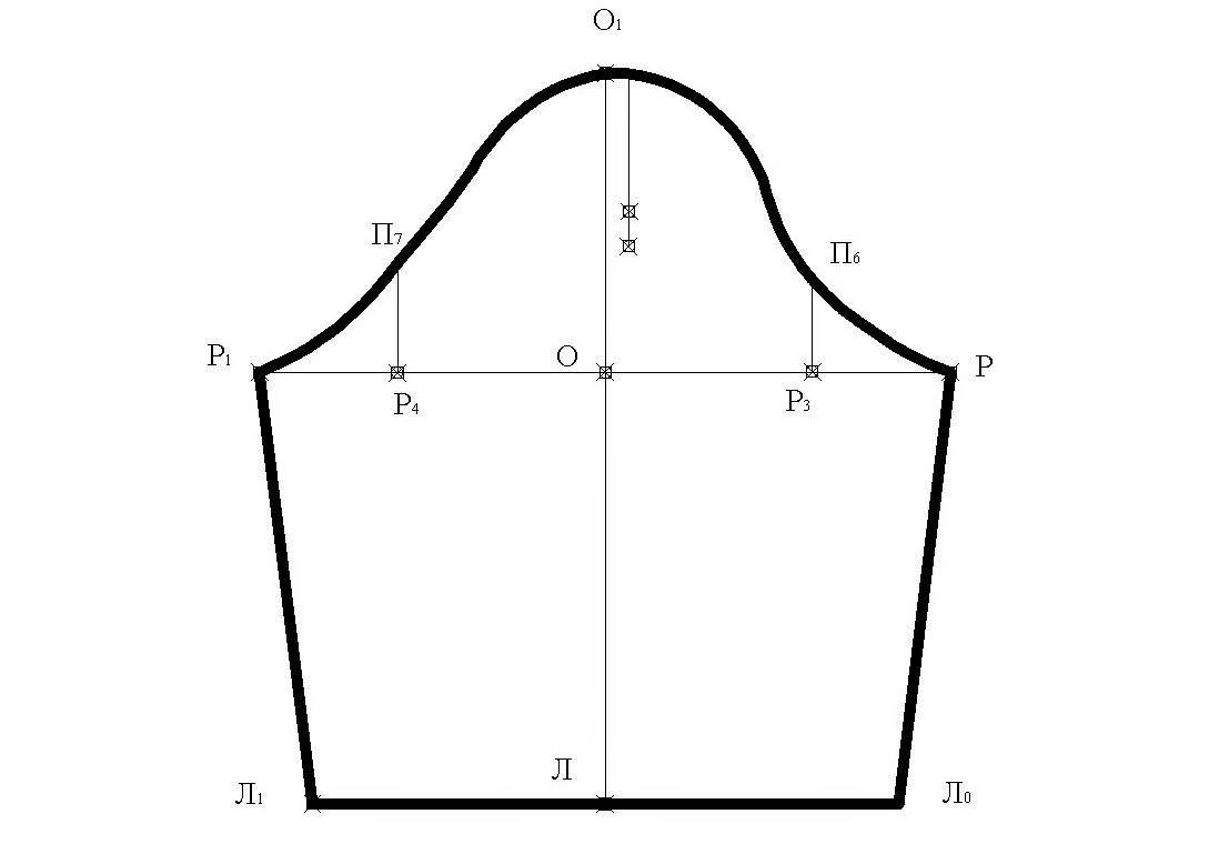 - Проделать аналогичный шаг на линии ширины рукава— ОО1.
