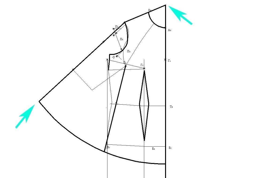 - От Г1 отложить влево расстояние, равное четверти обхвата груди минус 4 см, получив Г3.