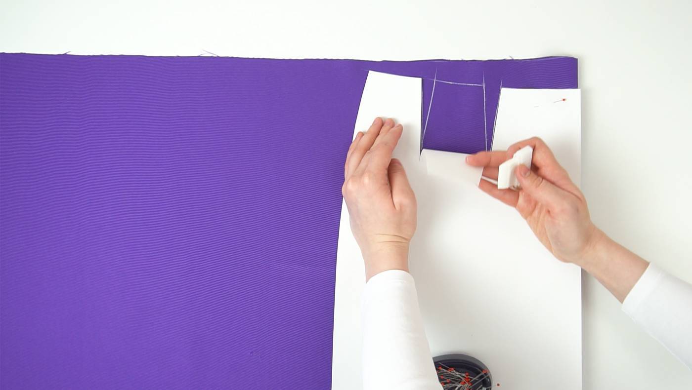 Раскрой выполняется точно по контуру, необходимо пройтись по всем линиям. При прорисовке линий можно использовать фигурные лекала, тогда контур будет ровным и четким.