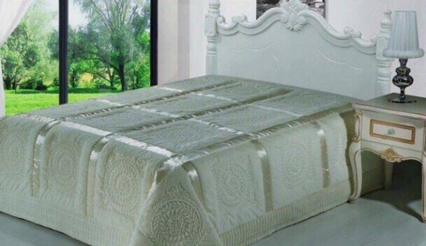 Стеганое покрывало – обычно делается с подкладкой из синтепона, которая обшита с двух сторон, материал для лицевой части и подложки можно выбрать любой.