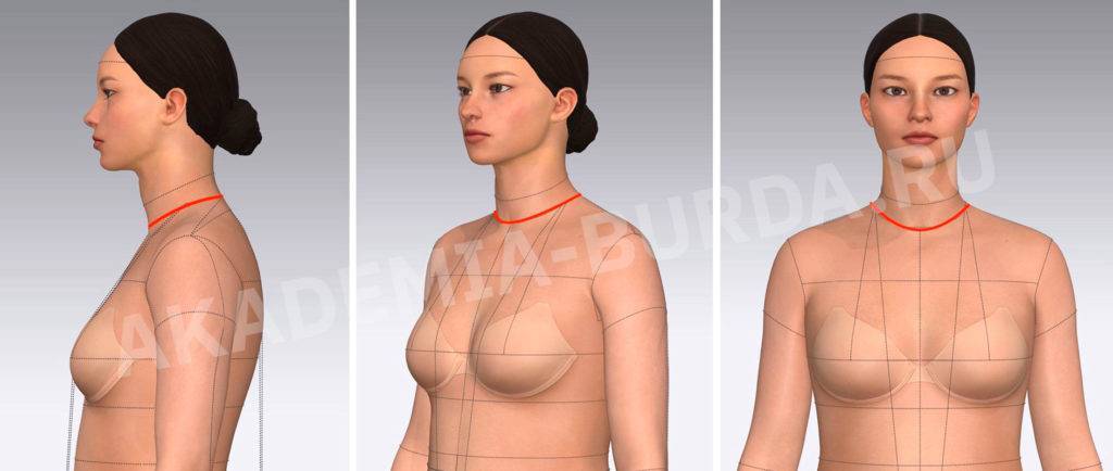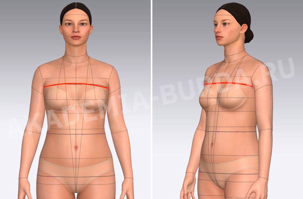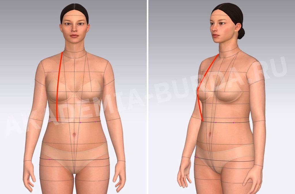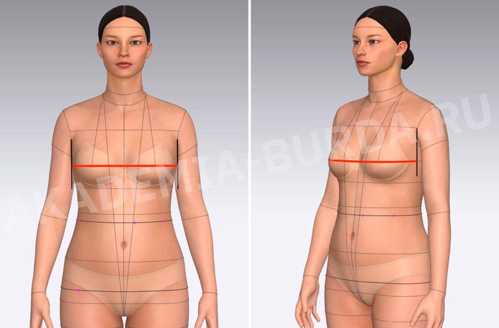 Вг (высота груди) — измеряется от высшей плечевой точки до выступающей сосковой точки. При данном измерении лучше использовать плечевую накладку.