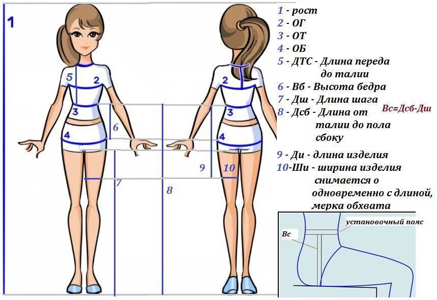 Для пошива поясных изделий — юбок, брюк, шорт, леггинсов вы можете использовать мерки из Таблицы на рис. 3.