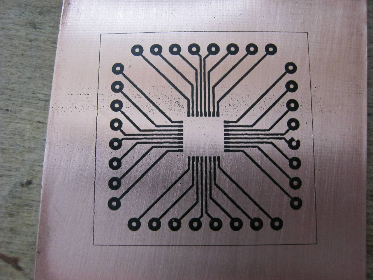 Далее плата очищается от тонера тампоном с растворителем, жидкостью для снятия лака, или подобным средством.