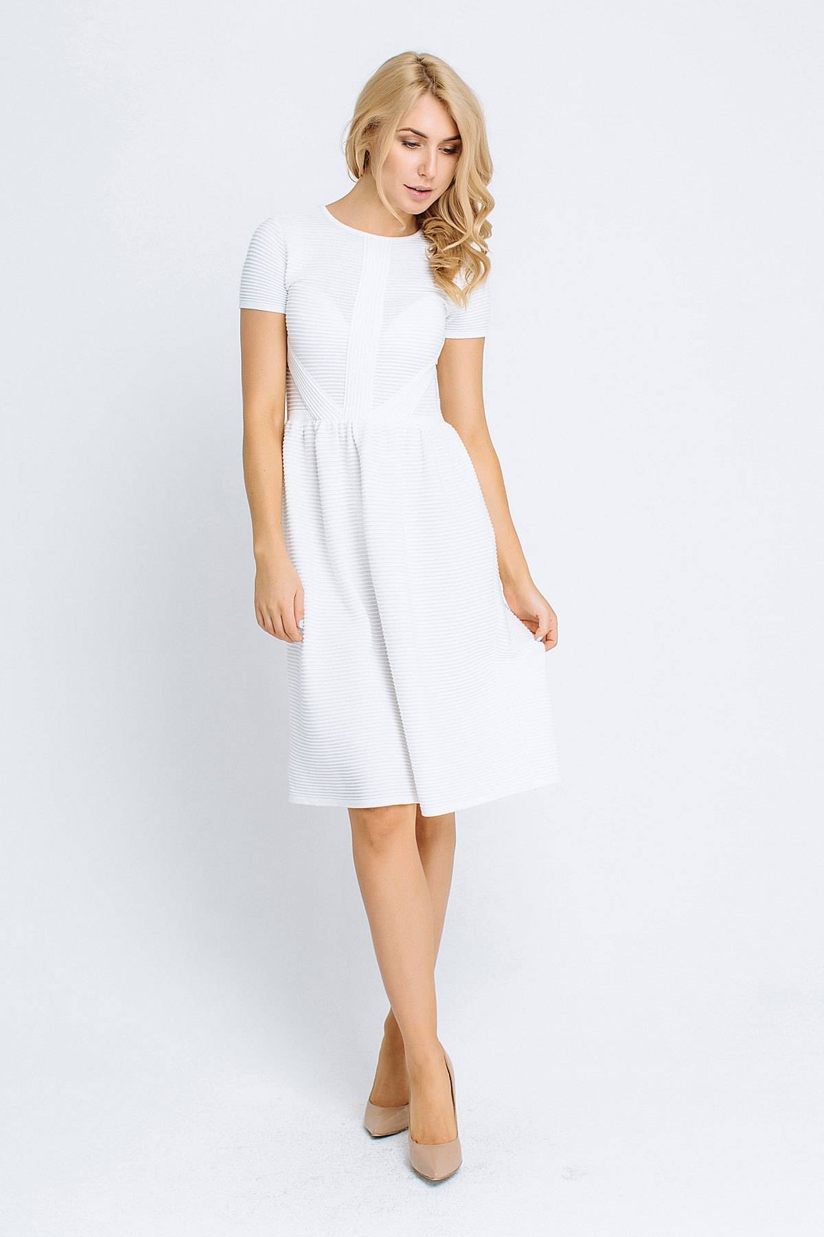 Трикотаж очень часто используется для пошива платьев в деловом стиле. Чтобы модель соответствовала дресс коду, она должна отвечать некоторым требованиям. Так, строгие фасоны для офиса всегда имеют среднюю французскую длину (миди) или ровно на одну ладонь выше колен. Крупные элементы декора, яркие расцветки, откровенные детали не допускаются.