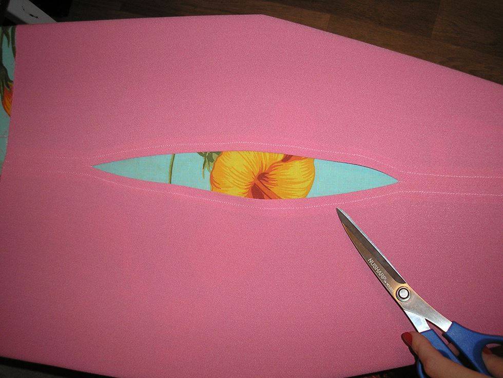 - В центре одного из длинных краёв сделайте надрез для зоны декольте.