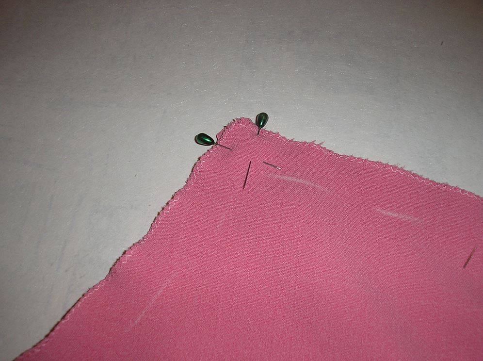 По изнаночной стороне скалываем булавками боковые швы переда и спинки с обеих сторон.