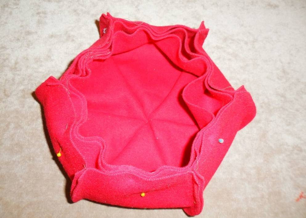 - Донце притачивают к тулье и снова разутюживают.