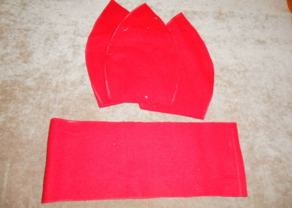 Для девочки или мальчика можно сшить простой классический берет. Но намного интереснее будет смотреться головной убор из клиньев. Для его пошива рекомендуется использовать плотный трикотаж или фетр. Чтобы аксессуар смотрелся необычно, его можно прошивать контрастными нитками. Для работы понадобится выкроить 8 клиньев и сразу обметать их, что предотвратит последующее крошение ткани. Также нужно вырезать ободок.