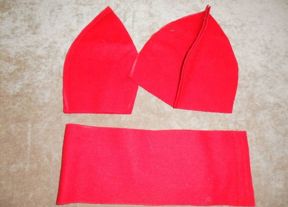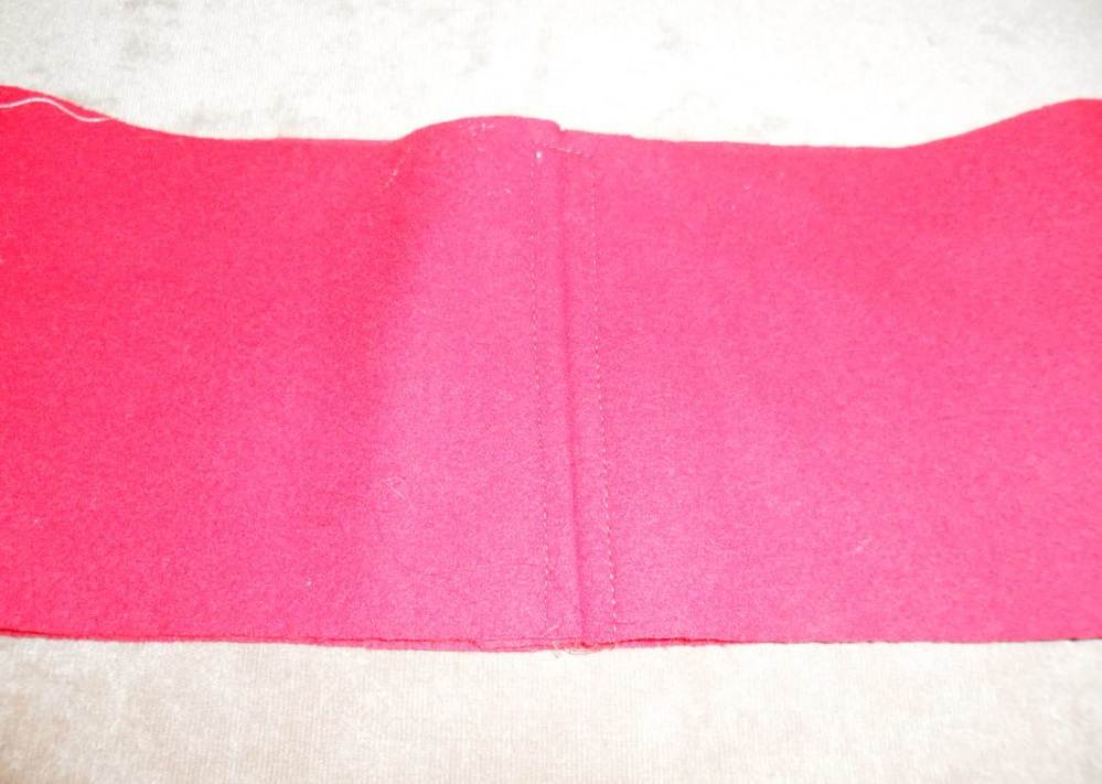 - Теперь проклеить околыш флизелином, что предотвратит последующую деформацию. Его необходимо сложить пополам, прошить короткие стороны так, чтобы образовалась окружность.