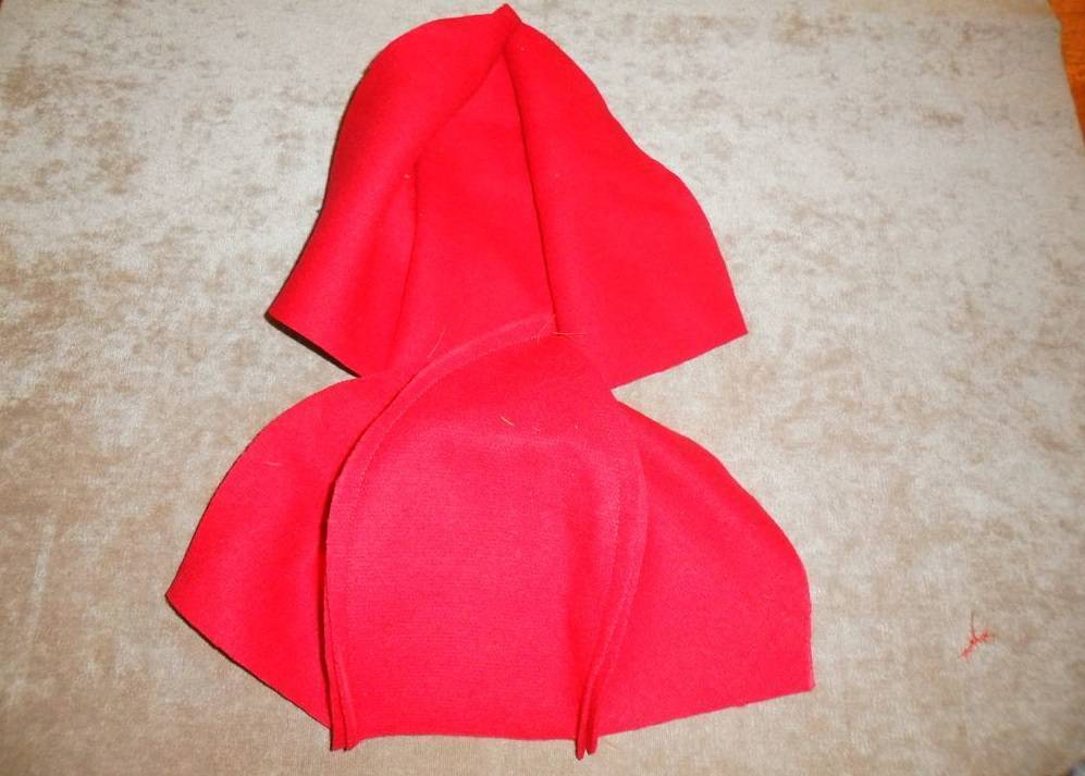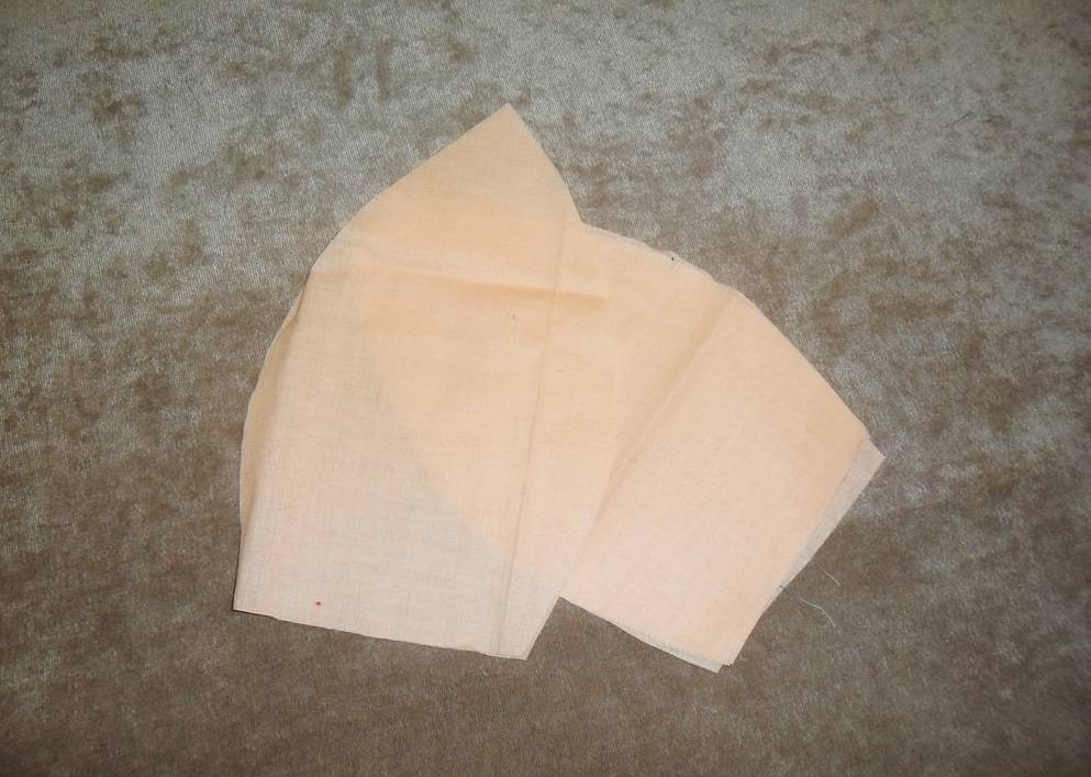 Сложив лицом к лицу два клина, сошьем их между собой по одной стороне.