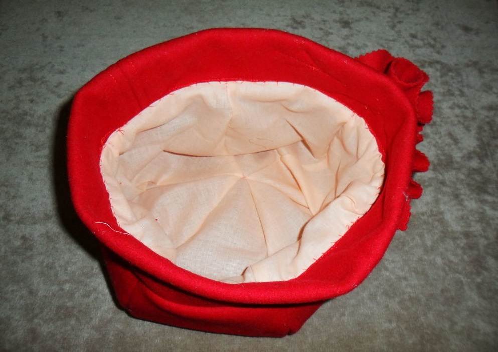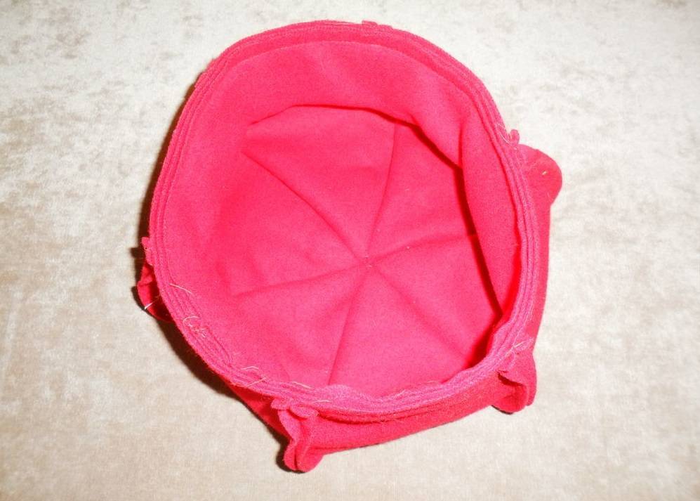 Внутри можно пришить подкладку, сделанную также, как основа из клиньев. При необходимости по всей внутренней окружности пришьем ленту из плотной ткани и ушки, которые можно будет доставать во время холодов.
