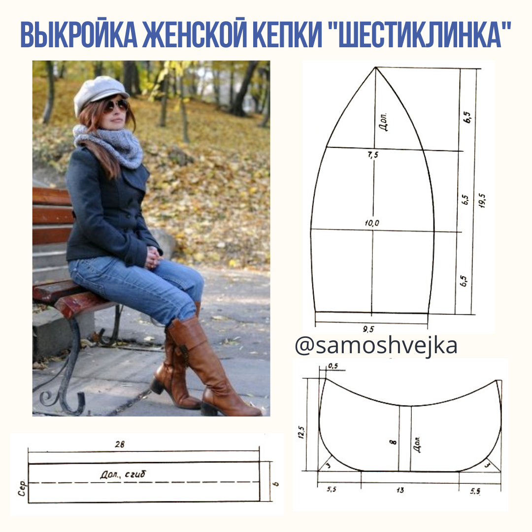 Выкройка берета, кепи с козырьком