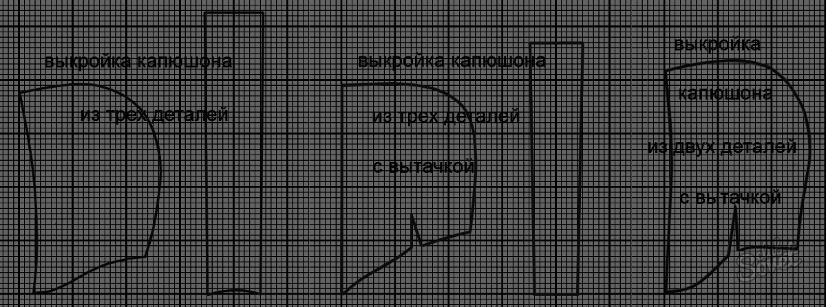 Рис. 2. Выкройки капюшонов: выкройка капюшона с застежкой по горловине