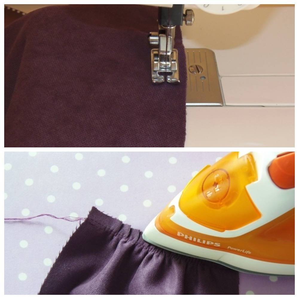 На каждой детали полочки проложить по две строчки, стянуть и сутюжить