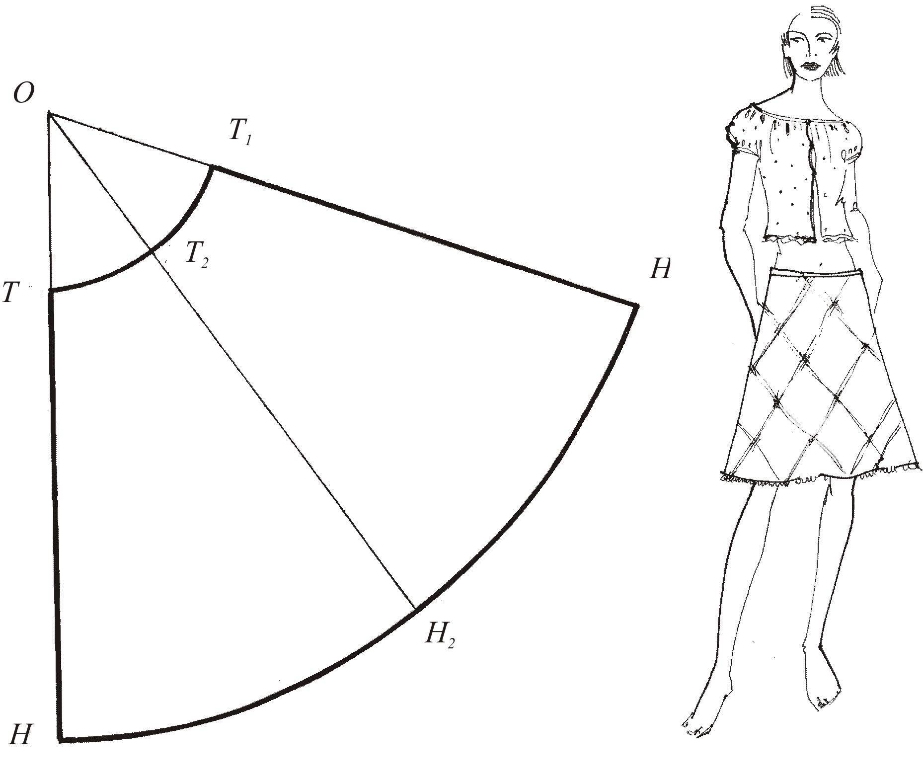 Это изделие мы сделали без выкройки, но при изготовлении некоторых вариантов юбки-колокола необходима любая выкройка.