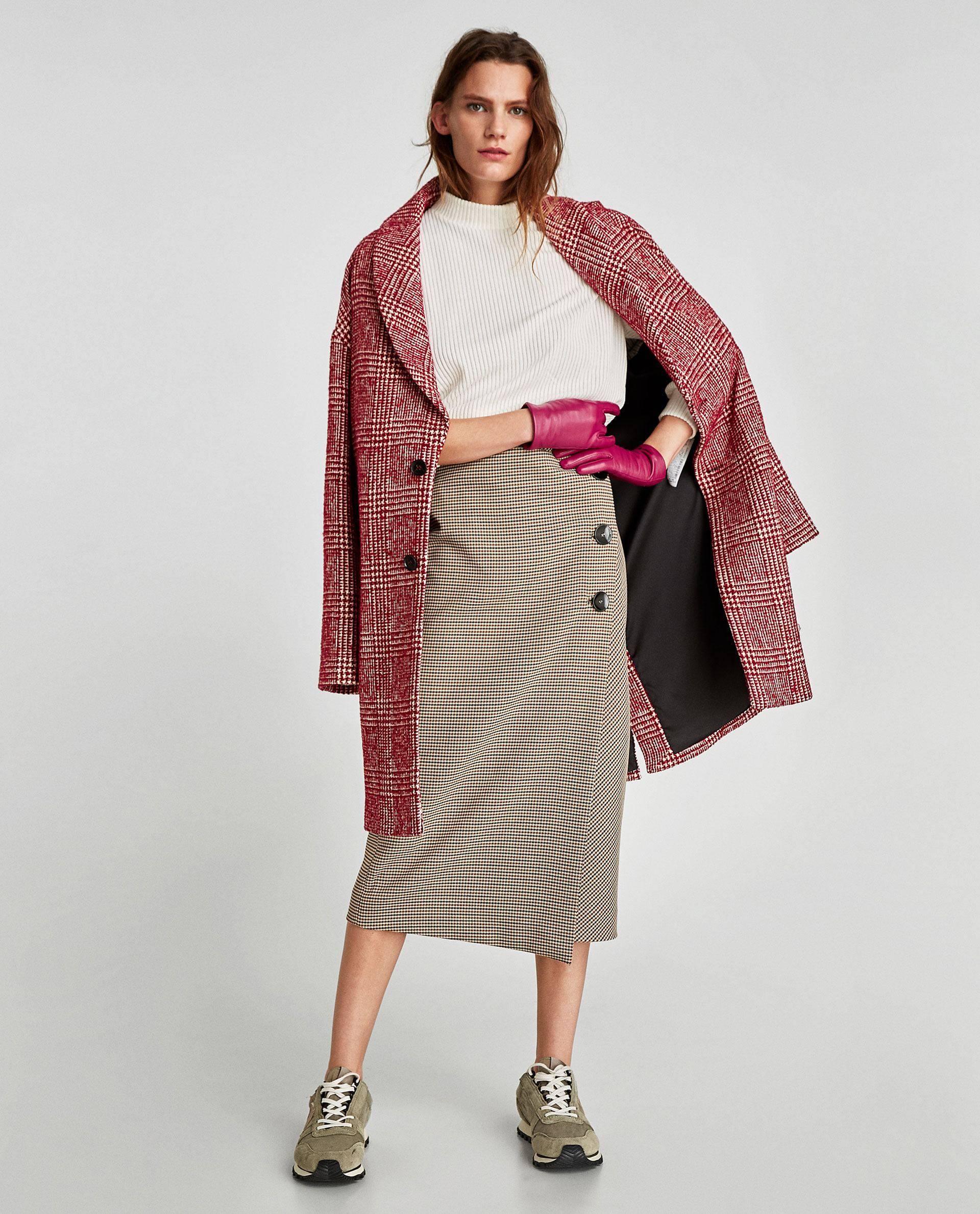 Юбки в полоску, как и клетка, особенно популярны в сезоне 2022-2023. Весь секрет в корректирующей геометрии: девочки ещё со школы знают, что поперечная полоска полнит, а продольная – стройнит. Фасон запаха дарит дополнительную функциональность с помощью длины, симметрии-асимметрии и прочих хитростей.