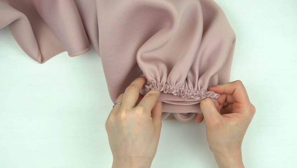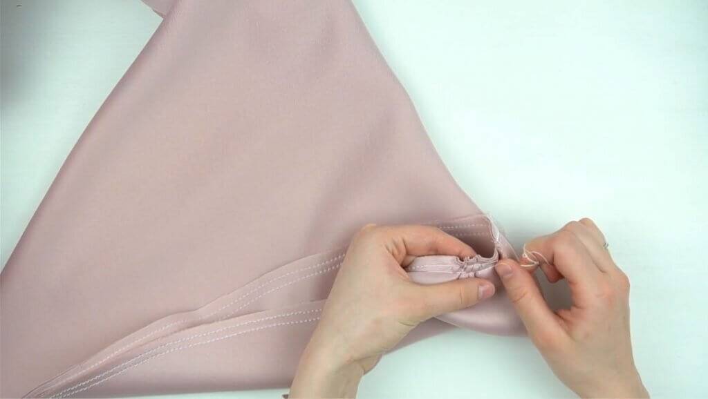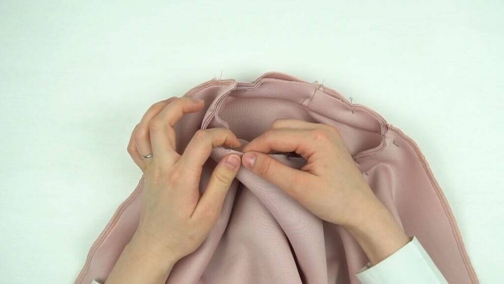 - Подогните обтачку наизнанку, прометайте, проутюжьте, прострочите на машинке.