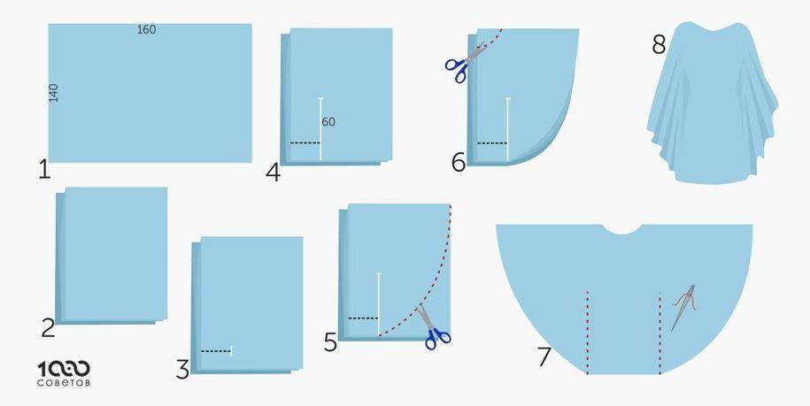 - Вырежьте из ткани прямоугольник длиной 160 и шириной 140 см.
