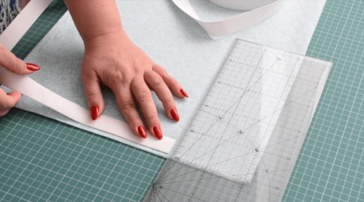 - Приложив выкройку к материалу, вырежьте обтачку.