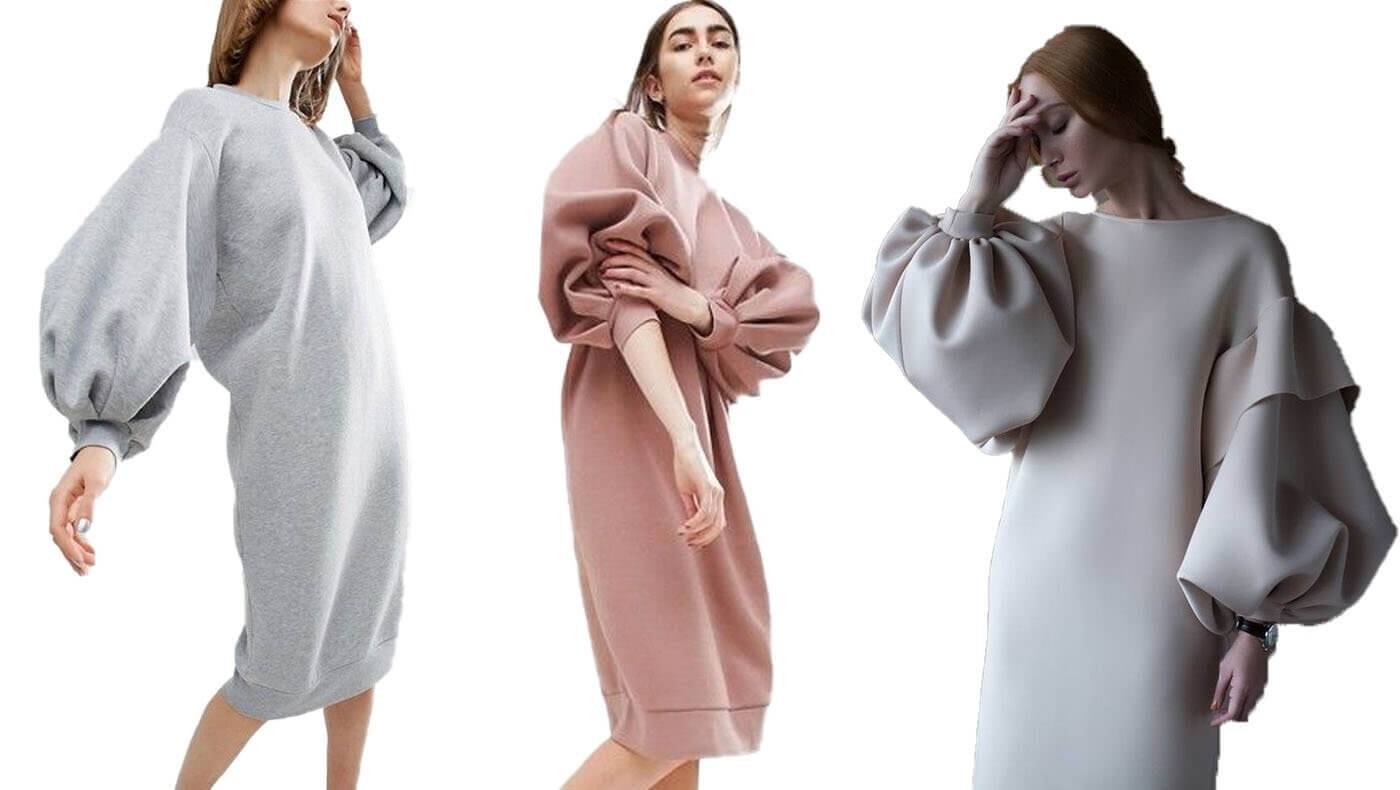В таком платье все отлично: простой покрой, кричащий вид благодаря объемным рукавам, практичный стиль — носите его как с обувью, так и со спортивной обувью.