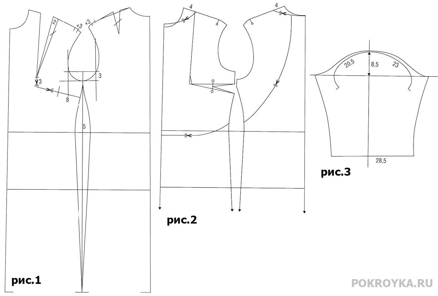 Раствор нагрудной вытачки перевести к боковой линии и укоротить вытачку.